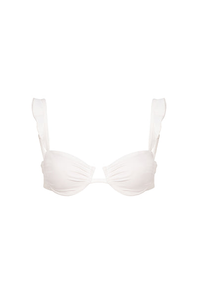 A dreamy blend of elegance and playfulness, the Mauritius underwire top combines delicate ruffle detailing and feminine gathers over the cups. Featuring ultra soft and comfortable underwire, the Mauritius top provides hold and full adjustability with a tie-back and adjustable straps.