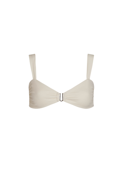 A timeless show-stopper designed with style and comfort in mind. The Mustique Top features a beautiful gold 'U' hardware detail at centre front, feminine gathers to shape your bust, and wider (adjustable) straps for a comfortable fit. Complete with a back-tie for additional adjustability, this top will have you feeling confident laying by the pool or swimming in the sea.