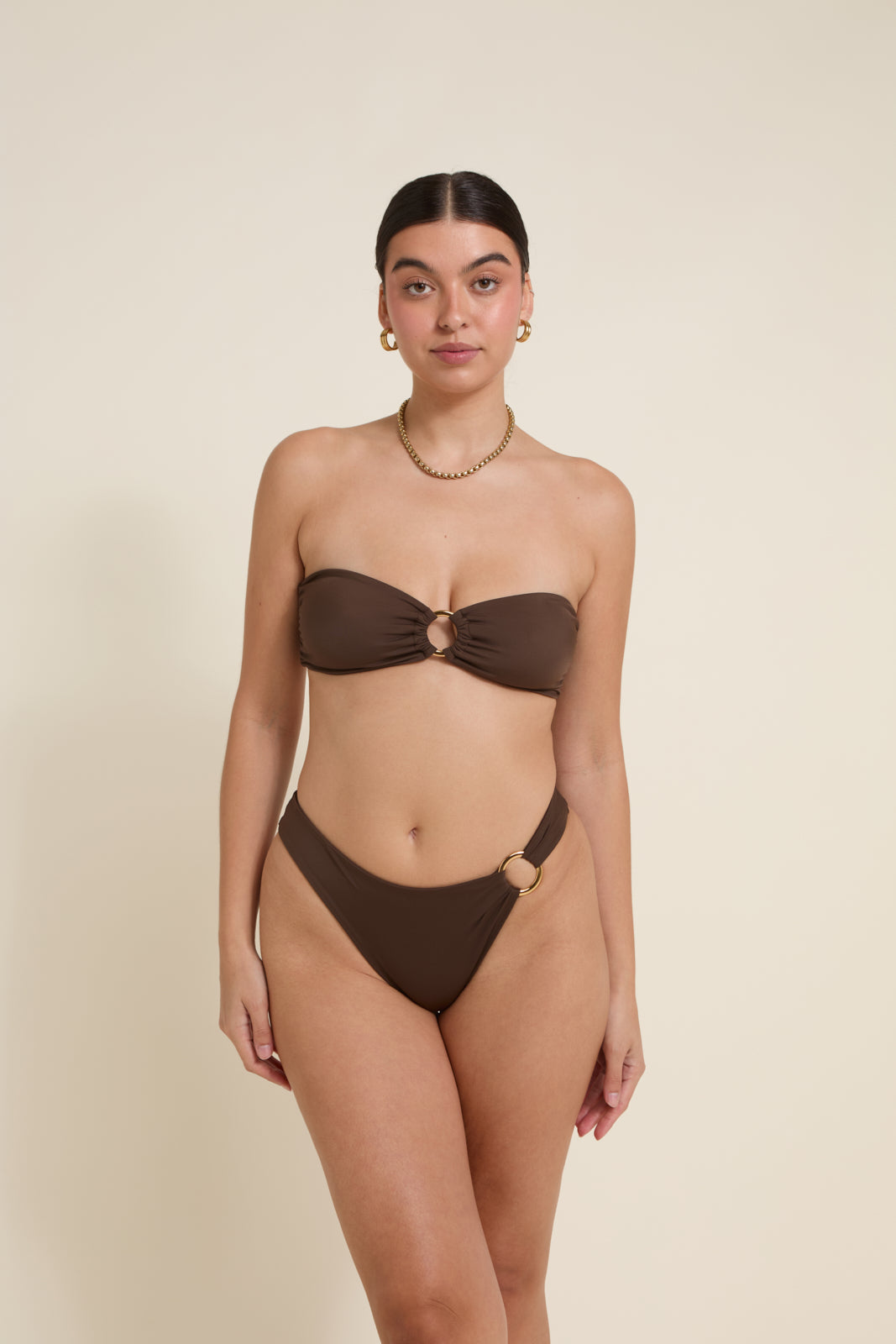 Our most flattering silhouette yet! The Acapulco Bottom features a high-cut leg to elongate your pins with a bold gold ring detail at the front. Designed with a high-waisted fit, this style features cheekier back coverage and accentuates your waist like no other.