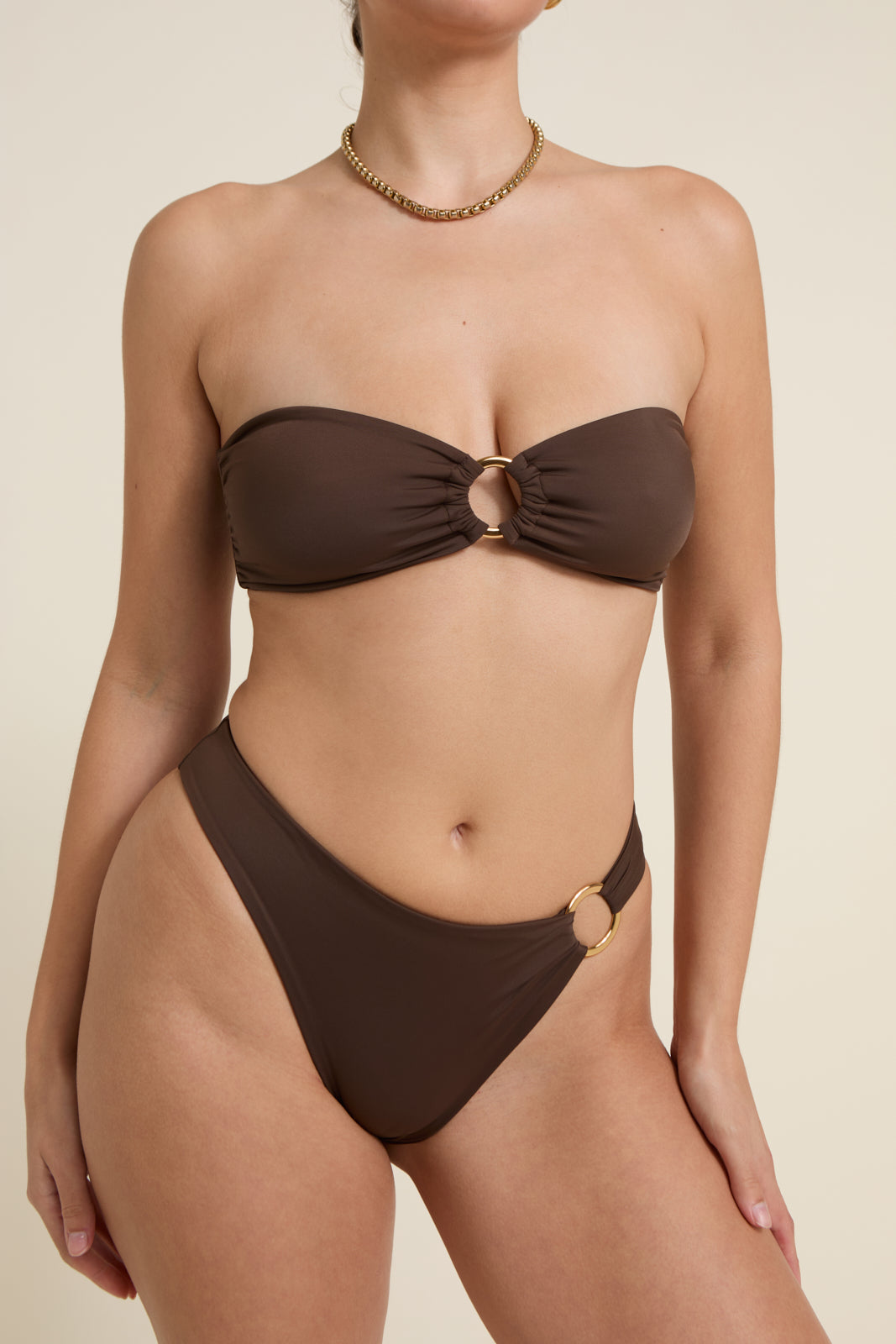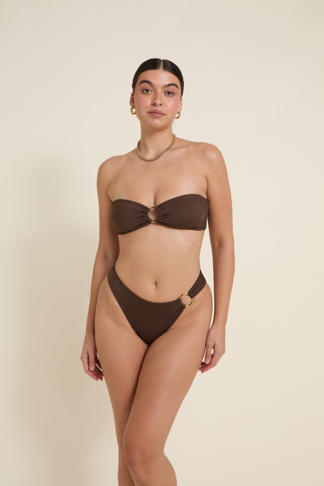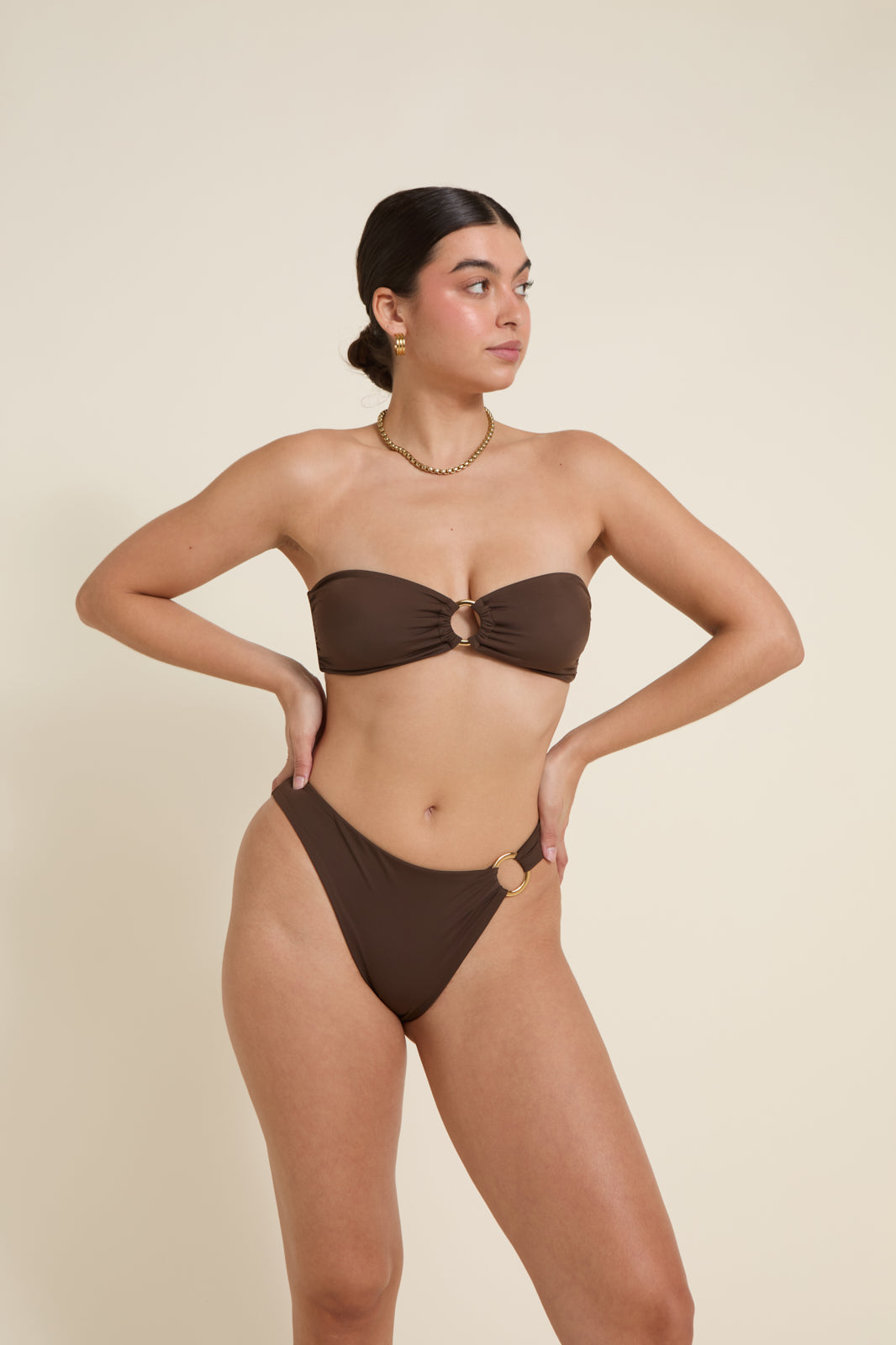 The perfect, go-to bandeau top for lounging in the sun. The Acapulco Top features gold ring hardware at the front, extra support with soft, side-boning to keep its shape and an adjustable back-tie. *Comes with additional thin strap which can be tied as a halter neck.